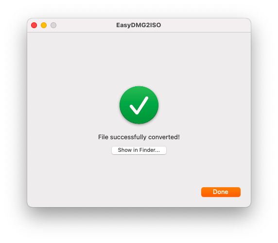 After the conversion is complete, you can easily find the converted files by clicking the “Show In Finder…” button. You will now be able to open converted files in non-Apple environments, such as Windows and Linux.